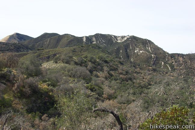 Proceeding to the left, you can hike another 0.05 miles to a crest on the east-west running ridge. Take in clear views of Big Baldy, a 2,686-foot peak in the Santa Lucia Wilderness of Los Padres National Forest to the northwest.