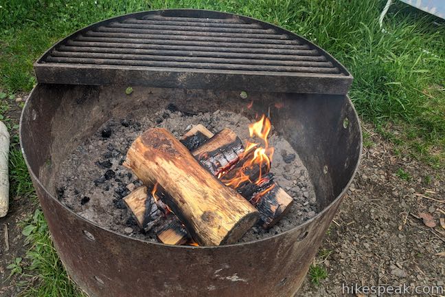 Dogs (and other pets) are expected to be on leashes while in the campground and park (unless they are inside a vehicle, tent, or RV). Fires are allowed in designated fire rings and camp stoves. Don’t plan on gathering firewood.