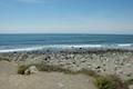 In addition to the nearby hiking trails, you may also wish to check out Willow Creek Picnic Area (photos below), which is located along Highway One, 2 miles south of Plaskett Creek Campground. A paved road drops from Highway One into a canyon at the end of Willow Creek, passing below the highway. The short road ends at a rocky beach where there is some parking, a toilet, and boulders to sit on to have a picnic. You can look up and down the coast from the cove at the bottom of the creek. The view of Cape San Martin and the small island called San Martin Rock just to the south is worth the drive down.
