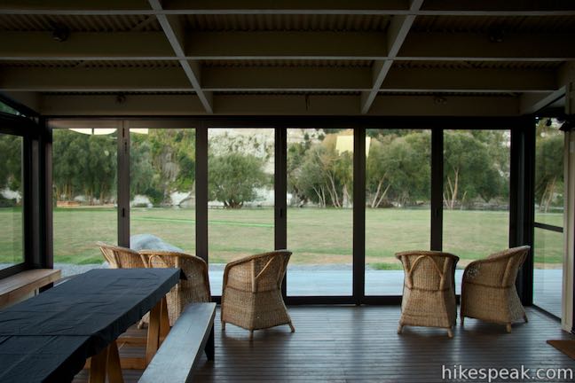 Windows throughout Rathmoy Lodge will lure you outside, but when you stay indoors, you can open up the windows for a refreshing breeze. A wide wooden deck runs along the east side of the lodge, where you can sit out and look across a lawn toward the Rangitikei River. Two big wooden tables next to the lodge make it easy to enjoy meals outdoors.