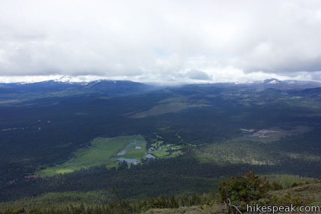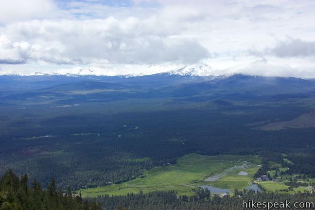 From the summit, a path forms a loop toward Black Butte Cupola on the summit’s northwest side. Take this path to discover views of Cascade Mountains not seen on the hike up. Find a mountain identification panel and face north to spot Hayrick Butte, Three Fingered Jack, Mount Jefferson, Mount Hood, and Mount Adams. Three Finger Jack and Mount Jefferson are quite impressive, rising to 7,841 feet and 10,497 feet. If things are clear enough to spot the 12,326-foot summit of Mount Adams, which is 125 miles away, than you are looking all the way into the state of Washington.