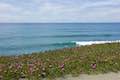 At around 250 yards from the start, a path on the right descends to a bench on the edge of the bluff surrounded by ice plant (sea figs) and other low ground cover. There are lots of benches along the Bluff Trail. Most are right along the trail, while others are set back a short distance. Proceed over a footbridge to come to another interesting bench, 0.2 miles from the start. Each bench along the trail is different, constructed with driftwood by local artists to add charming features along trail (that facilitate enjoying the Bluff Trail’s main attraction – the spectacular ocean views).