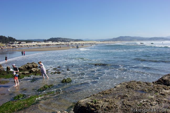 Watch waves roll up on the beach at take a good look at Haystack Rock, also known as Chief Kiawanda Rock. This pyramid of dark rock just off the coast is a few hundred feet tall and fairly uniformly shaped, except for a small appendage on the north side that forms a small tunnel. North of here, near Cannon Beach, is another better-known monolith called Haystack Rock.