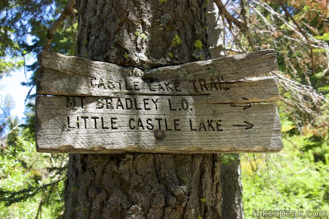To get to the trailhead: Take interstate 5 to exit 73B in Mount Shasta. At the end of the offramp, head west (away from the city) on Lake Street toward Hatchery Lane, following signs for Lake Siskiyou. Turn left on Old Stage Coach Road and drive south for 0.2 miles. Veer right onto Barr Road and drive another 2.3 miles to Ney Springs Road. The intersection comes after you cross the outlet of Lake Siskiyou. Turn left up Ney Springs Road. Make the next right onto Castle Lake Road. Drive 7 miles up to the end of the road at a parking area by Castle Lake where the hike begins.