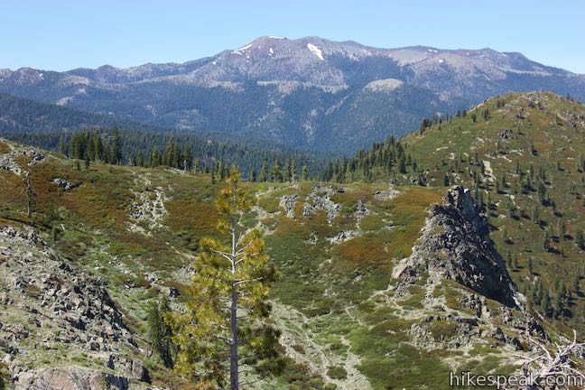 Routes up the north and east sides of Castle Peak make it possible to visit the summit on a loop above Heart Lake. Hiking from Castle Lake to Heart Lake to Castle Peak and back down is around 3.2 miles round trip with 1,180 feet of elevation change. Castle Peak has awesome views and, as off trail summits go, is not too hard to reach.