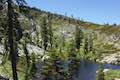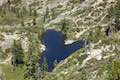 Set out down the east side of Castle Peak, hiking over loose rock and boulders. A path leads over step-sized rocks and through a few patches of brush. Just do your best route finding as you descend the mountainside. Spectacular views of the Castle Crags are joined by a perspective looking down the steep ridge toward Heart Lake. The heart shape is very defined from this nearly overhead angle.