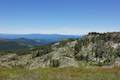 The route up the ridge reaches a level spot where fellow hikers have built a circular stone shelter as a refuge from the wind. To the right, a short path leads west to an outcropping of rocks at the true summit. From the high spot, you can look south and west over surrounding ridges in the Klamath Mountains. The finest views are visible right from the rock shelter, looking southeast toward the Castle Crags and northeast over Heart Lake and Castle Lake.