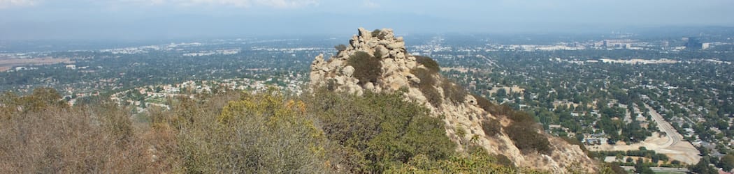 This hike begins in West Hills where the west end of the San Fernando Valley meets the Simi Hills. The loop has 725 feet of elevation change, but only 250 feet are gained in the first 0.8 miles leading to the cave. Most of the elevation comes on the steep ascent to Castle Peak.