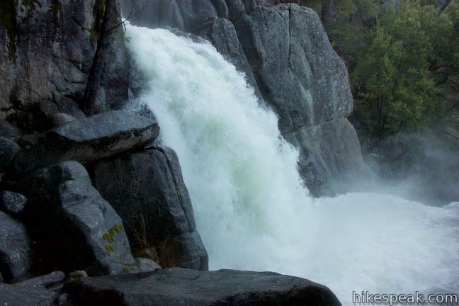 The best view of Chilnualna Falls comes three-quarters of a mile from the top. A sizable seasonable stream pours over the trail from left to right, providing its own waterfall that is undeniably pleasant if not as impressive. This liquid conduit clears the forest below, providing the broadest window of Chilnualna Falls.