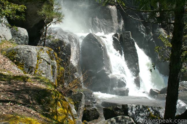 Begin from a parking area off Chilnualna Falls Road in the Wawona Area of Yosemite National Park and walk a short distance east on the road to the marked start of Chilnualna Falls Trail. A stock trail angles to the left. Be glad you aren’t a horse and take the single track toward a sensational string of cascades. In no time at all, you will be standing alongside a raucous chain of pour-overs in Chilnualna Creek. The water absolutely thunder in the spring when snow melt swells the banks.