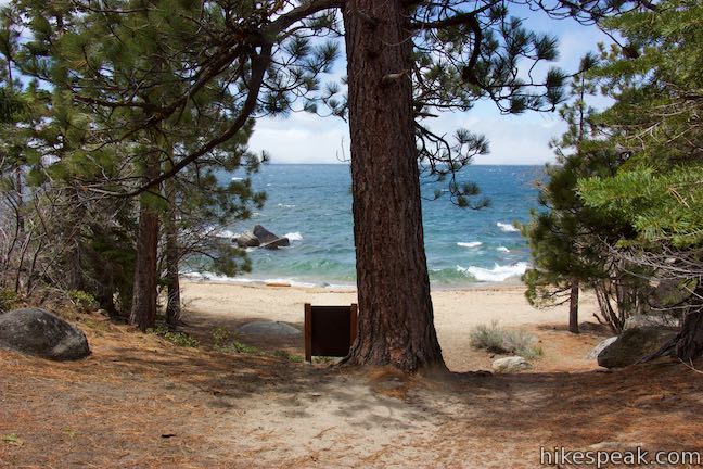 Start from the Secret Harbor Parking Lot, which is about a twenty-mile drive up the Nevada side of Lake Tahoe from South Lake Tahoe or a seven-mile drive down from Incline Village. The parking area is laid out in a loop with spaces for a couple dozen vehicles (and with luck, there will be an opening for yours).