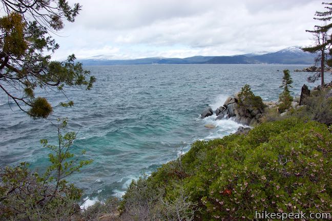 To get to the trailhead: From the California border in South Lake Tahoe, take Nevada Route 50 north along the lake. Drive 12 miles up to an intersection with Route 28. The intersection is a couple miles after Route 50 strays away from the lake. Turn left on Nevada Route 28 and drive another 5 miles north. Pull into the Secret Harbor Parking Lot off the left side of the road.