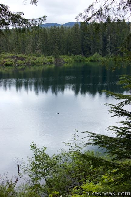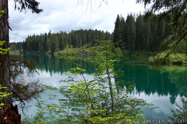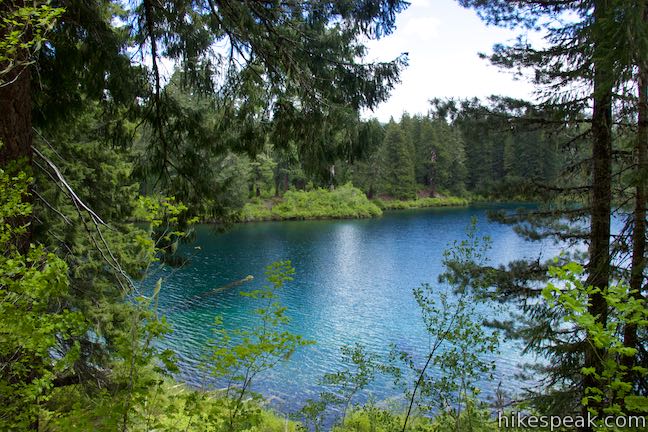 It is possible to start Clear Lake Loop from a couple different places. Those staying at Coldwater Cove Campground, on the east side of the lake, will find it simpler to set out from an adjacent trailhead at the end of Forest Route 770. The easiest trailhead for day hikers to reach is Clear Lake Resort and Picnic Area, on the west side of the lake just off McKenzie Highway. The directions offered here begin from Clear Lake Resort and go through the loop in a counterclockwise direction.