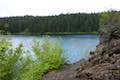 Say so long to the lava field and slip back into the trees. The old-growth forest over the next quarter mile may be the nicest of the entire loop. Enjoy bountiful shade in this ferny forest. The trail travel up the north side of the lake and curves around an awesome spot called the Great Spring.
