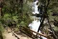 Admire this great perspective of Corlieu Falls (even it if is obscured by a few tree limbs). The viewing platform, built out on a steep bank, definitely makes it easier to see the waterfalls than it would be otherwise. The waterfall is named after Charles Clifford Corlieu, who settled in the area and built a cabin along Lewis Creek above the falls.