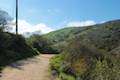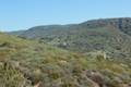 Head north on Rattlesnake Trail up a canyon parallel to No Name Ridge Trail. Rattlesnake Trail gradually descends into the narrowing canyon lined by brush and boulders. The trail makes a horseshoe bend and ascends the south wall of the canyon. Reach the top of the dirt road after regaining 225 feet in a quarter mile (2.35 miles from the start) and take in a panoramic perspective of Crystal Cove State Park from a ridge above a fork in Moro Canyon.