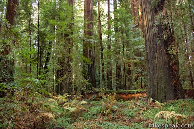 To get to the trailhead: From the north, drive 34 miles south of Eureka on Highway 101 to exit 671. At the bottom of the ramp, make a left, cross under the 101 and make the next left onto Avenue of the Giants (a scenic drive that parallels Highway 101 through Humboldt Redwoods State Park). Drive a quarter up Avenue of the Giants to the trailhead and park along either side of the road. The trail begins from the west side of the road next to a sign and picnic table.