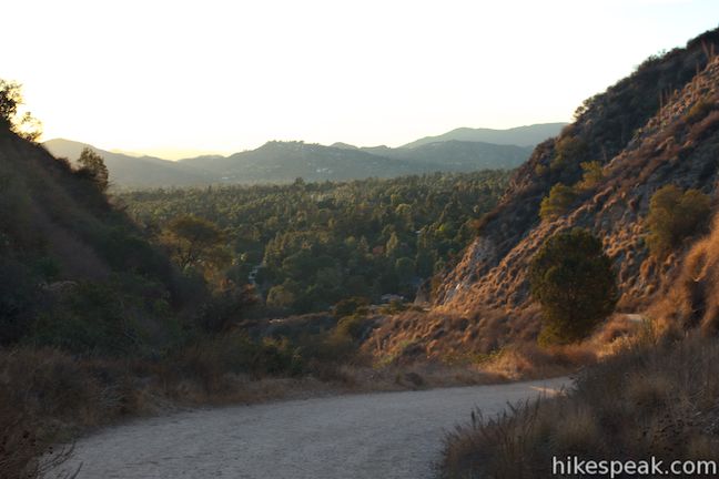 If you hike that far and want to go farther (but don’t have the energy to climb another 3,150 feet to Mount Wilson), you can extend the hike a bit farther up Mount Wilson Toll Road to a loop road to a helipad on the ridge above Henninger Flats, gaining broader views on an 8.7-mile round trip hike with 1,700 feet of elevation change.