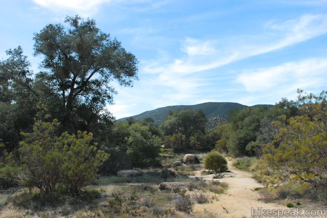 To get to the trailhead: Take Route 79 to Lost Valley Road in Warner Springs. Lost Valley Road is located 1.5 miles northwest of the center of the small town. In the other direction, the intersection is 18 miles southeast of Aguanga on Route 79. There will be a sign for Atáxam Mámta'ash Campground (Indian Flats) at the bottom of Lost Valley Road. Drive north up the narrow paved road for 7 miles to the campground at the end of the road. The trail begins from the far end of the loop. If you are not staying overnight at Atáxam Mámta'ash Campground, additional parking can be found near the group camping area at the start of the loop.