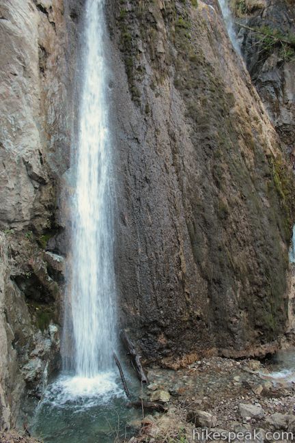 Scramble up along a cascade in the stream beneath the falls, maneuver back to the left side of the creek, and climb through redwood roots to reach a small opening below the waterfall. From here, there’s nothing to obscure your view as you gaze up at the water coursing down a cliff at the back of the side canyon. Near the top of this 100-foot tall waterfall, the water splits into two white ribbons that grow farther apart as they fall. If the waterfall is flowing at its max, there will be several other cords of water coming down the falls to create a unified sheet of white water. Winter and early spring will be the best chance to see this waterfall in full force.