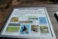 Toyon and other brush line the trail as it crosses this narrow strip of nature on the bluffs. A line of houses forms a rim at the top, and there is a wooded stream below the trail. Two panels along the trail depict the wildlife on the bluffs, including snakes, lizards, rabbits, butterflies, and a variety of birds. You may also find white paint on the road, marking out every quarter mile of the trail to keep you updated on your progress.