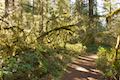 Hike up Canyon Trail through the forest along the creek – a mix of big-leaf maple, Douglas fir, western hemlock, red cedar, vine maple, alders, and cottonwoods. The forest gets about 80 inches of rain annually and is quite lush. The tree branches are covered with moss and lichens. Sword ferns, bleeding hearts, and Oregon grapes flourish along the trail.
