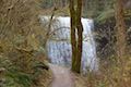 Canyon Trail splits at the bridge. Straight ahead, the more exciting side of the trail continues up the south side of the canyon leading to a wild section of the trail that crosses ledges behind the waterfall! Across the bridge, the other side of the Canyon Trail goes up a few switchbacks through trees (and more views of South Falls) to reconnect with the branch of the trail crossing behind the waterfall. Taking the straight ahead option, it is 0.6 miles back to the trailhead. The branch to the left, across the bridge, is a tenth of a mile shorter.