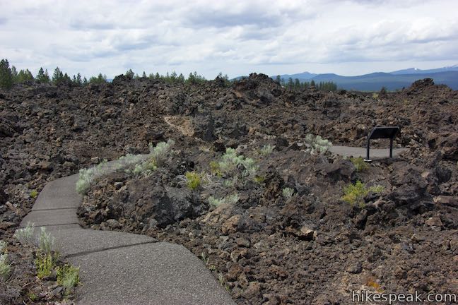The Trail of the Molten Land snakes through this rough basaltic landscape up to Phil Brogan Viewpoint, which is positioned atop a shelf in the lava flow with open views to the west. Take a seat on one of the benches at this trail-ending overlook and admire the Cascade Mountains. Going from north to south, the notable snow-capped summits in view are North Sister, Middle Sister, Broken Top, South Sister, and Mount Bachelor, rising to 10,985 feet, 10,047 feet, 8,175 feet, 10,358 feet, and 9,068 feet respectively.