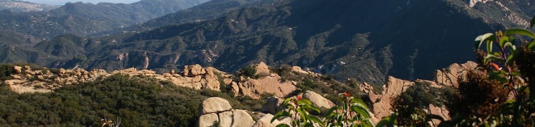 Turn right up the wide and well-maintained trail, which leaves the oaks for sagebrush along the undulating ridge. As you cross the ridge-top, you will be surrounded by broad views into deep canyons. To the left is Santa Ynez Canyon, stretching south into the Pacific Palisades. To the right is enchanting Topanga Canyon, a thousand foot trench cutting across the range.