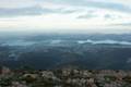Compared to the boardwalk, you can see even farther south from the summit, looking beyond the River Derwent toward the southern end of Tasmania. Impressive rock columns on Mount Wellington known as the Organ Pipes are visible to the southwest where you’ll also see a building alongside a communications tower that rises over Mount Wellington like a tall white pole. There is also another less prominent radio tower to the north, backed by more mountain views.
