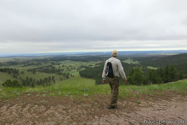 To get to the trailhead: From the city of Custer, take Route 16A east for 6.5 miles and turn south on Route 87. Drive 12.7 miles to an access road leading to the trailhead. The turnoff is on the left (east) side of the road a tenth of a mile south of Route 391 (Rankin Ridge Road) and 5.3 miles north of Route 385. Take the paved access road for 0.3 miles to a parking area at the start of the hike. Vehicles with trailers can park in a paved turnout at a scenic viewpoint along Route 87 next to the intersection with the access road.