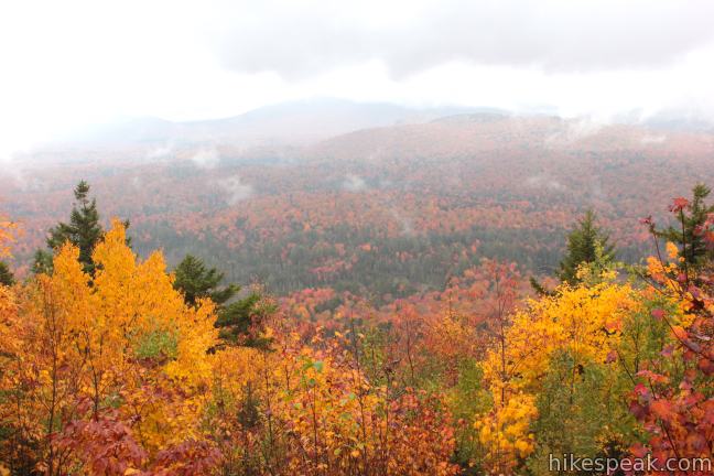 For summit views without the usual summit effort, head to Sawyer Mountain in the Adirondacks. The trail to the top of the mountain gains 650 feet over a 2.5-mile round trip hike. While the trail travels through a sheltered hardwood forest the entire way, there are two overlooks around the summit that provide far-reaching views over the trees across the surrounding valleys, ridges, and summits. Sawyer Mountain tops out at 2,600 feet and the peak can be bagged with one hour of enjoyable effort.