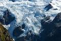 You can walk a bit farther out on the ridge to get a full view of Mount Sefton with nothing but air between you and that 3,151-meter tall mountain. From this vantage, about a third of the mountain is below you and 2/3 of its ridges and glaciers are above you. It feels like the whole mountain is right in front of you and you can watch as sections of ice tumble down walls of dark rock and see snow swept up like cloudbursts. Changes on the mountainside make noise too, like small cracks of thunder or scraping rocks.