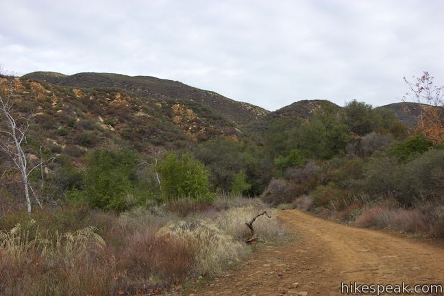 Leave Sisar Road and turn right up Sisar Canyon Road, beginning the on-dirt hiking. Pass a pair of holding tanks as Sisar Canyon Road pitches uphill and becomes rougher. The road comes to a split after just 1/8 of a mile. Avoid Fuel Break Road, which rises to the left, and stick with Sisar Canyon Road as it delves into Sisar Canyon.