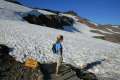 From Panorama Point, Lower Skyline Trail drops off a steep snow shelf on a potentially dangerous path that cuts close to half a mile off the hike. If the snow level is high and you aren’t wearing crampons, continue on Upper Skyline Trail, which gains an additional 300 feet, climbing farther up the rocky slope toward Mount Rainier. Eventually, the trail turns downhill, and after just over 3/4 of a mile, reunites with the lower route.