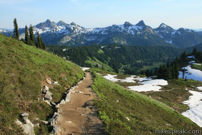 To get to the trailhead: From the west, from the 5 Freeway in Tacoma, take exit 127 onto Route 512 east and drive 2 miles to Route 7 South. Turn right and drive 65 miles, passing through the town of Ashford and into Mount Rainier National Park. Pass Narada Falls and turn left on Paradise Road, concluding the trip with two miles of switchbacks up the Paradise. The trail is located between the visitor center and the inn.