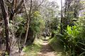 Gasses and steam escape from cracks and holes in the ground along the trail (atop fractures in the side of the caldera). The trail slips into rainforest and views of Kīlauea disappear, except for some windows in the trees, 0.2 miles past the junction. A small meadow also breaks up the rainforest hike, where bamboo orchids and other non-native and native plants may be observed.