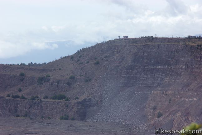 Hike along Crater Rim Trail for a tenth of a mile to a junction with a path from the Steam Vents Parking Area along Crater Rim Drive. Crater Rim Trail is set just a few feet back from the steep edge of Kīlauea Caldera. This area offers attractions near and distant.
