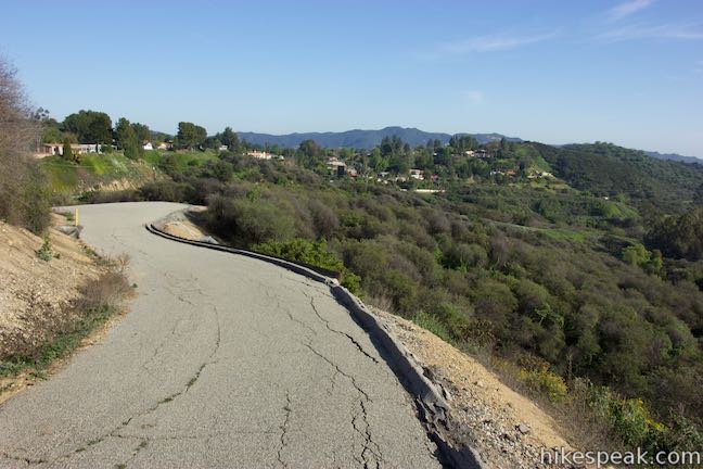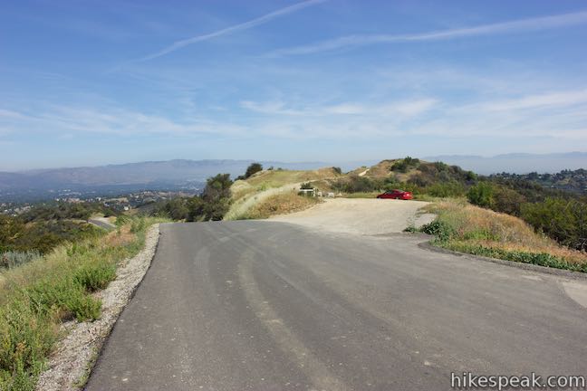 To get to the trailhead: From the 101 Freeway, take exit 29 for Valley Circle Boulevard/Mulholland Drive. At the end of the ramp, turn south on Mulholland Drive (which is called Valley Circle Boulevard north of the freeway). Drive south for 0.6 miles and turn right on Valmar Road. Valmar Road becomes Old Topanga Canyon Road after 0.4 miles. Stay on Old Topanga Canyon Road for an additional 0.8 miles and turn right at an intersection with Mulholland Highway. Drive less than a quarter mile and turn left up Old Topanga Canyon Road. Drive 1.6 miles and cross the top of Old Topanga Canyon Road to reach the start of Summit to Summit Motorway, which is on the left across from Calabasas Peak Motorway. Roadside parking is available just past Calabasas Peak Motorway along the south side of Old Topanga Canyon Road.