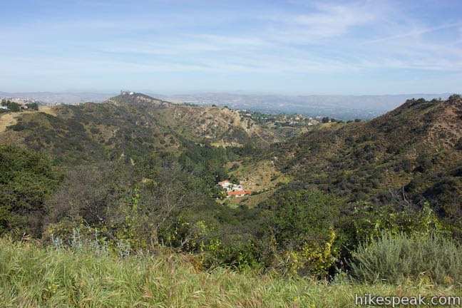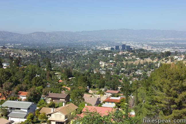 If you’re heading back to Old Topanga Canyon Road and would rather skip this paved 100-foot descent, walk out to a level landing off the left side of the road and take in panoramic views over the San Fernando Valley that best those found at Top of Topanga Overlook, which is visible below. Having bagged this over-the-top-of-Topanga view, you can turn around for a rewarding 6-mile trek.