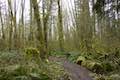 Walk above the forest floor to the end of the boardwalk and across dirt trail again to a junction with Mink Path. You could turn right to return to Vine Maple Trail, but turn left to hike another 1/3 of a mile to Oak Trail.