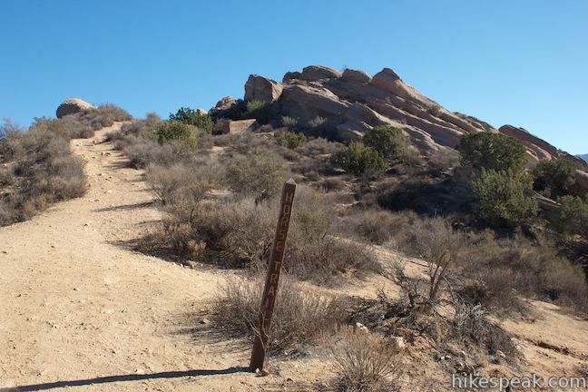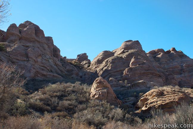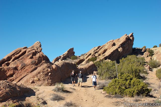 To get to the trailhead: Drive up the 5 Freeway to Newhall Pass and take exit 162 for Route 14. Drive 14.3 miles north on Route 14 (Antelope Valley Freeway) and take exit 15 for Agua Dulce Canyon Road. Turn left at the bottom of the ramp and drive north for 16 miles on Agua Dulce Canyon Road to a sharp right hand turn in the road. Take it, and continue up Agua Dulce Canyon Road, which becomes Escondido Canyon Road after 0.2 miles. At 0.8 miles from the turn, make a right hand turn into Vasquez Rocks Natural Area Park. Inside the park, turn right at the split to stop by the visitor center, or proceed to the left down the dirt road toward the Famous Rocks and trailhead for the Pacific Crest Trail.