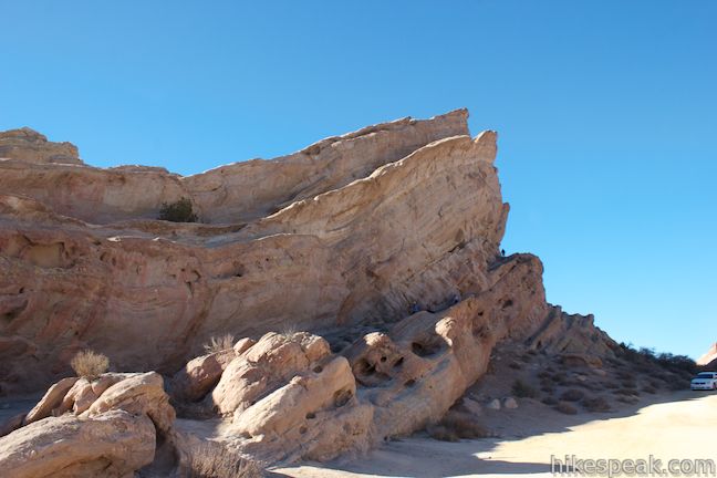The park has three clear places to leave your vehicle and begin exploring. Start from the visitor center just off Escondido Canyon Road to check out two park trails not described here, Geology Trail and History Trail. A dirt road from the Visitor Center leads to a large dirt parking area below the Famous Rocks. Partway down the dirt road to the Famous Rocks is another parking area on the left and a trailhead for the Pacific Crest Trail. Start here to hike the loop through Vasquez Rocks Natural Area Park.