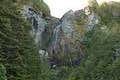 There is a sign for the waterfall just above the spot where a track crosses the creek to continue on to Blyth Hut. At this point, 1.9 kilometers from the start, you can look up the canyon for a view of Waitonga Falls. The two-tier waterfall makes a twisted drop off dark but colorful cliffs. The top half of the falls is like a steep slide, plunging into a pool suspended on the canyon wall. For there, the water leaps off the rock face and free falls to the base.