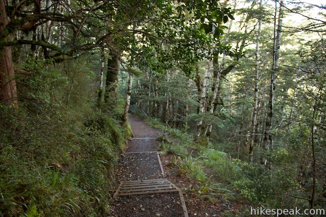 It’s pretty obvious that Waitonga Falls Track goes to a waterfall, which is actually the tallest waterfall in Tongariro National Park. The track’s other offerings may surprise you though, like a boardwalk across alpine wetlands with pools that hold a mirror to Mount Ruapehu, the biggest volcano in New Zealand. Indeed, you’ll get big enjoyment from this 4-kilometer (2.5-mile) round trip trek with 110 meters (360 feet) of elevation change.