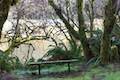 Going left from the junction, Yurok Loop Trail enters a dense forest of Sitka spruce, Douglas firs, and alders. Ferns cover the ground and moss clings to the sides of the trees. Pass a bench along the trail, 0.3 miles from Lagoon Creek Picnic Area. Have a seat and look out over the lagoon pond that was enlarged in the 1940s and filled with hundreds of peeled logs. The picnic area can be spotted on the other side, backed by Redwood Highway.