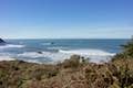 The ocean vista is 0.35 miles from the junction at the south end of Yurok Loop. It is another tenth of a mile down to the junction at the north end of the loop. Leaving the viewpoint, the trail descends away from the ocean, offering views north up False Klamath Cove. The trail slips back into dense forest one last time before returning to the junction at the top of the loop.