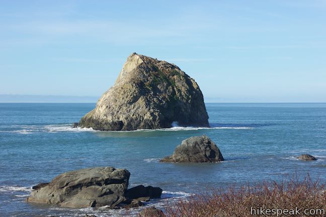 Step out onto a bluff with a steep drop to the surf and look out over rock islands with names like False Klamath Rock and Wilson Rock. Seabirds gather around these massive rocks (a reward for those who carry binoculars). A bench along the trail offers a place to take a seat and gaze out at the Pacific Ocean.